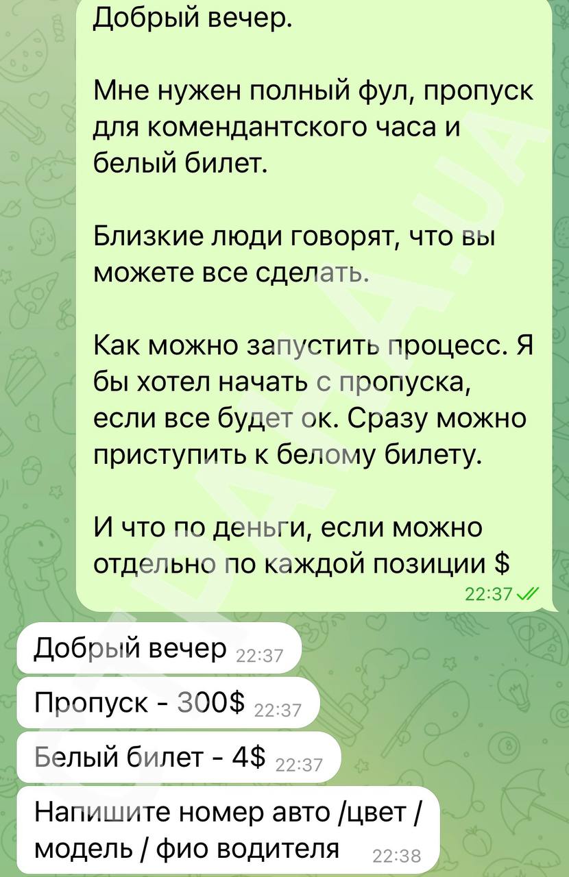 Стоимость документа около 300 долларов. Оставляем запрос на покупку спецпропуска и менее чем через минуту получаем ответ. Мошенники, админы канала, на связи в любое время суток.