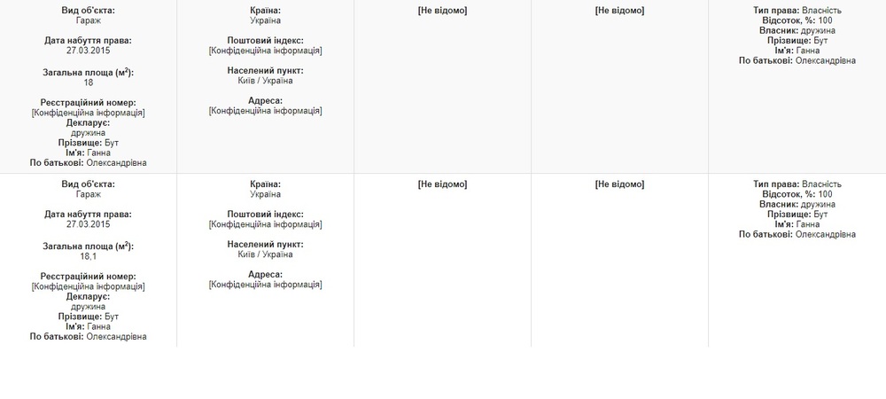 Те самые квартиры и гаражи, которые купила, а затем подарила матери Анна Бут. Фото: public.nazk.gov.ua