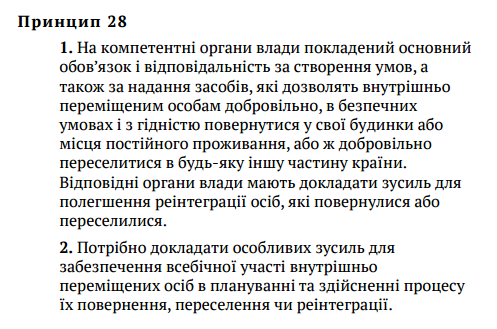 Украинское издание "Руководящих принципов ООН по вопросам внутреннего перемещения" было презентовано в Министерстве по вопросам временно оккупированных территорий и внутренне перемещенных лиц к Международному дню беженцев в июне этого года.