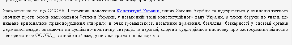 Дальше – больше. Без наличия приговора, и даже до начала судебного процесса, в постановлении Печерского суда об аресте говорится о нарушении Александром Лавриновичем Конституции и законов. Судья Олеся Батрин прямо назвала действия, которые пока еще расследуются прокуратурой, "уголовным преступлением".