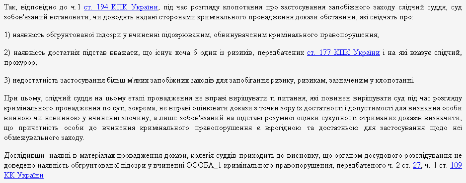 Апелляционный суд указал в своем постановлении, что следственный судья Печерского районного суда Киева Олеся Батрин, принимая решение о мере пресечения для бывшего министра юстиции, вышла за рамки предусмотренных законом полномочий. В частности, она самостоятельно вынесла заключение о виновности подследственного.