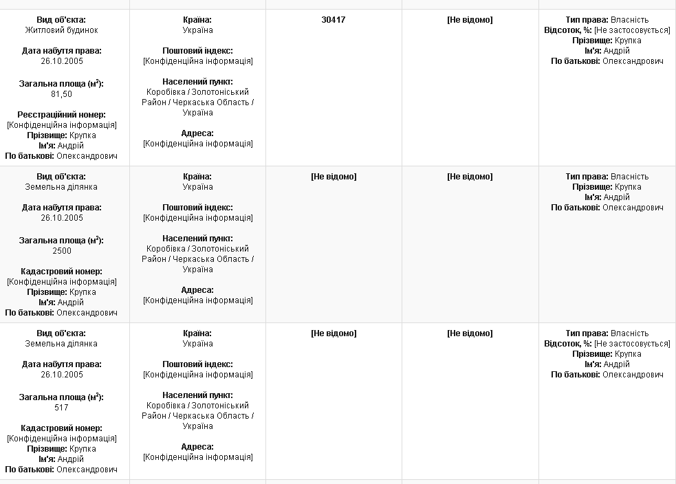Например, в 2016 году он задекларировал владение домом и несколькими участками в Черкасской области, которые были приобретены в 2005 году: