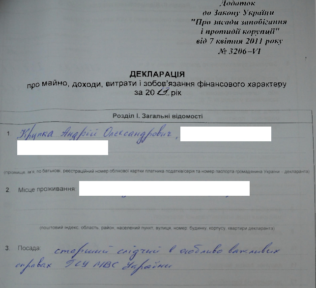 Однако в декларации за 2013 год, поданной, когда Андрей Крупка работал следователем в МВД, эти объекты не указаны – в разделе "Недвижимость" стоят одни прочерки: