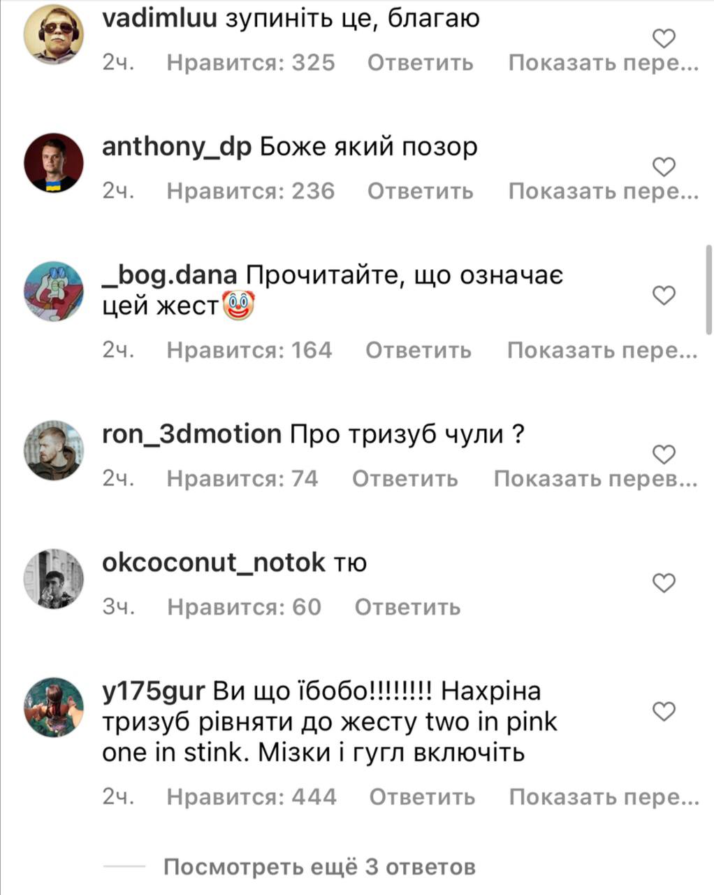 Страницу креативного агентства тут же забросали гневными комментариями с разъяснениями - что именно значит тот жест, который хотели сделать символом Дня Независимости. Полдня украинцы массово призывали Banda Agency "мозги и Гугл включить”, "не равнять сексуальный жест к Тризубу" и "удалить пост и не позориться".