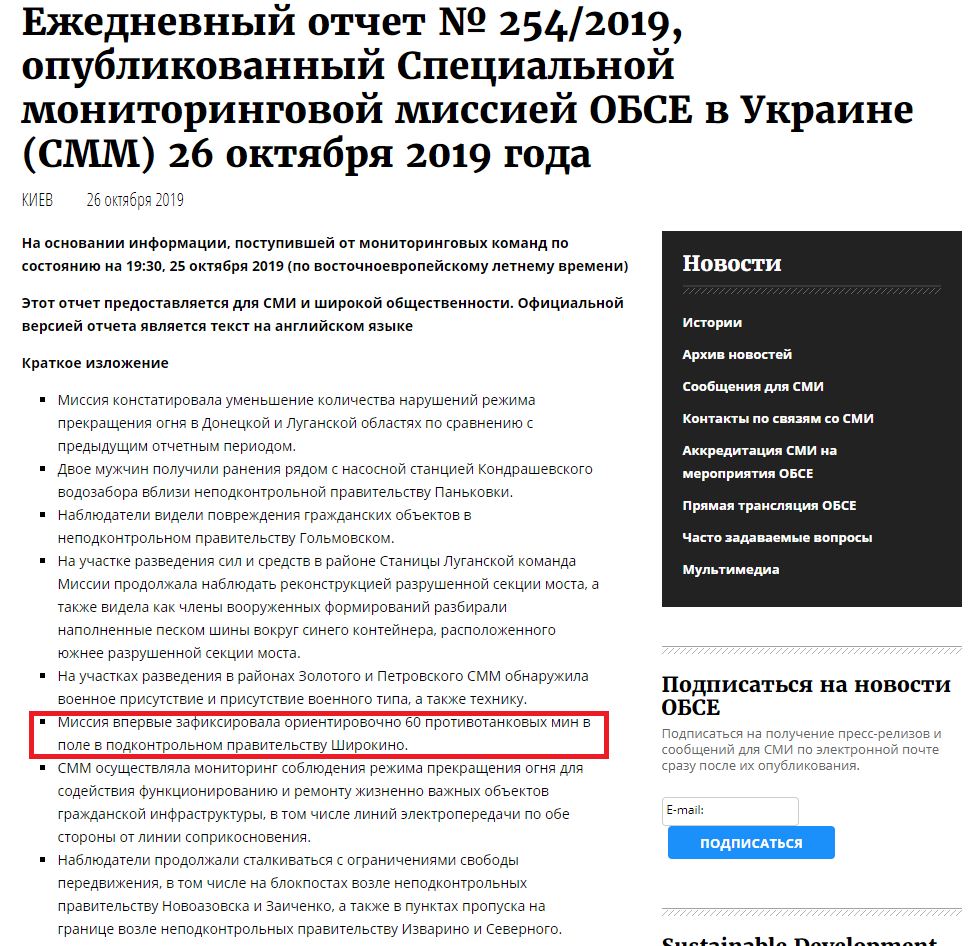 Об этом свидетельствуют отчеты как иностранных благотворительных организаций, таких как британско-американская благотворительная организация The Halo Trust, которая занимается разминированием в Украине, так и мониторинги миссии ОБСЕ в Украине.