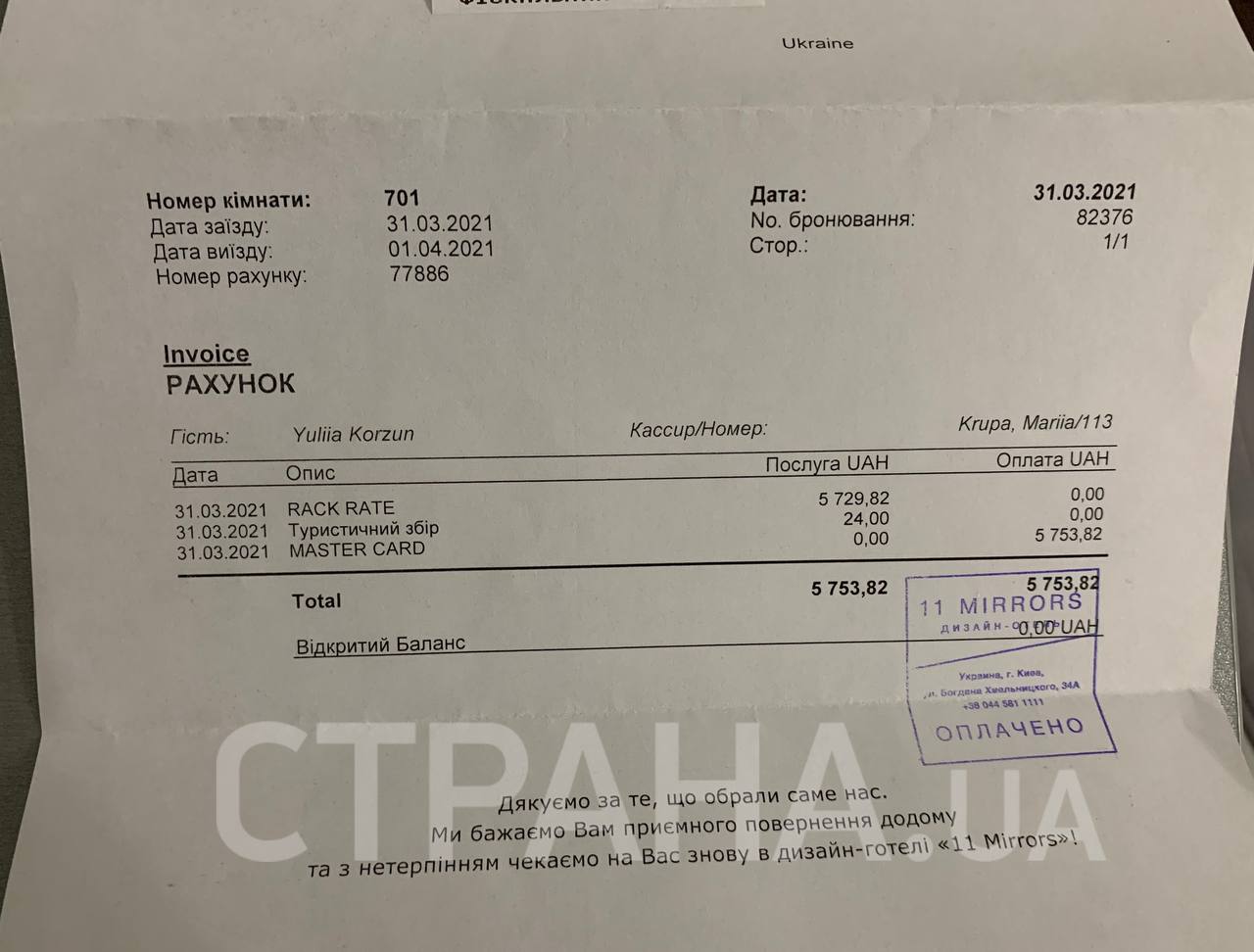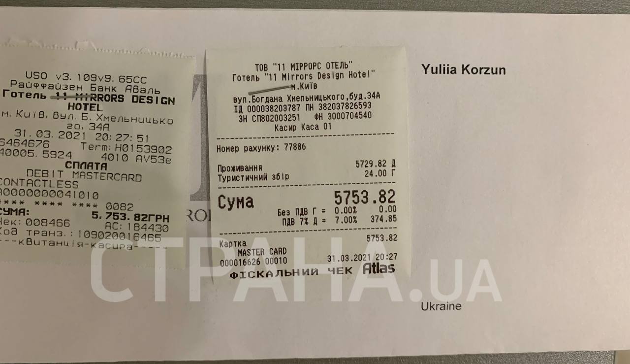 В целом одна ночь, включая проживание в отеле 11 Mirrors, тренировку в спортзале "для своих" и ужин обошлась "Стране" почти в 7 тысяч гривен. Именно столько стоит возможность пренебречь всеми карантинными ограничениями.