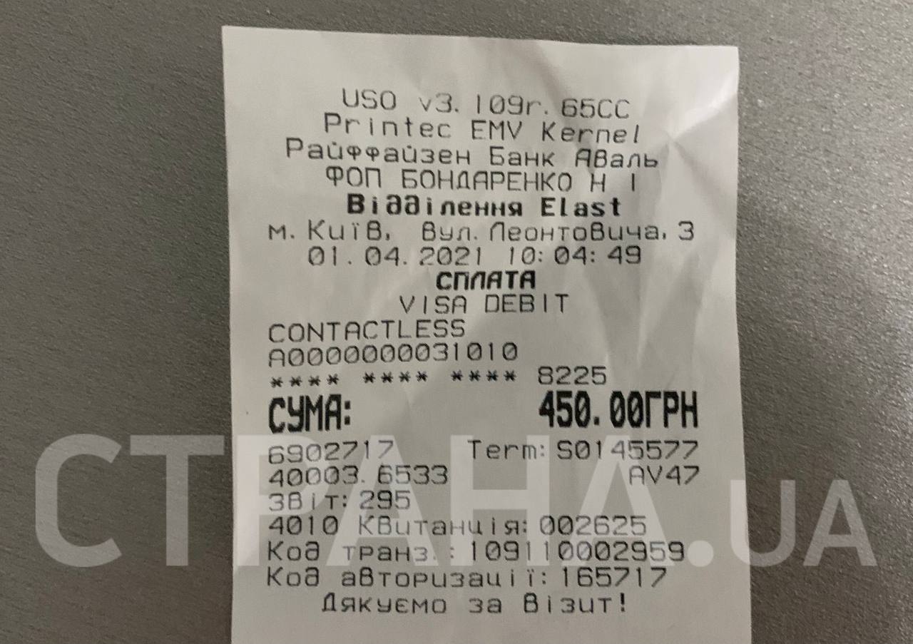 Чек за разовое посещение спортзала Fizika во время локдауна. Фото: "Страна"