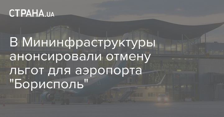 Мининфраструктуры согласилось отменить решение о льготах международному аэропорту "Борисполь" (Киевская область), которые предоставлялись в виде пониженного тарифа на аэронавигационное обслуживание.