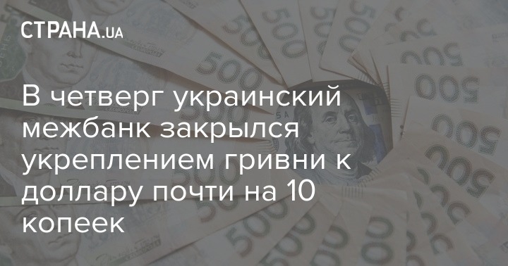 В четверг украинский межбанк закрылся укреплением гривни к доллару почти на 10 копеек