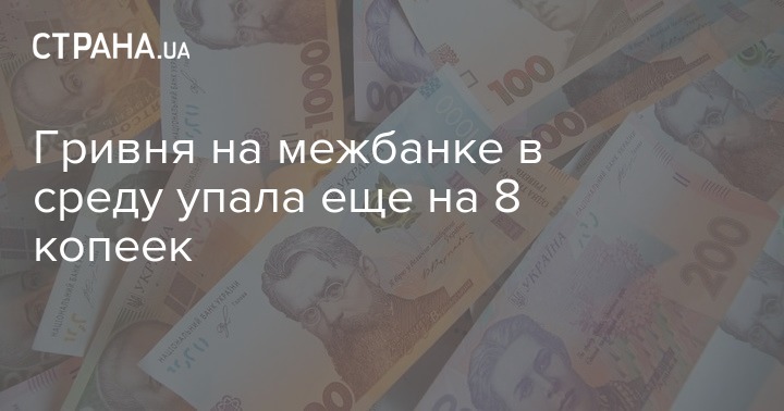 Гривня на межбанке в среду упала еще на 8 копеек
