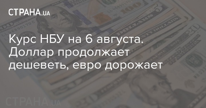 Курс валют НБУ на 6 августа. Скриншот: bank.gov.ua