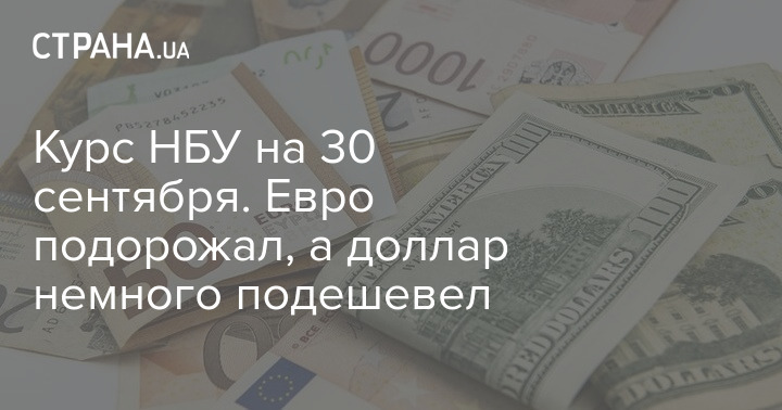 Курс НБУ на 30 сентября. Евро подорожал, а доллар немного подешевел