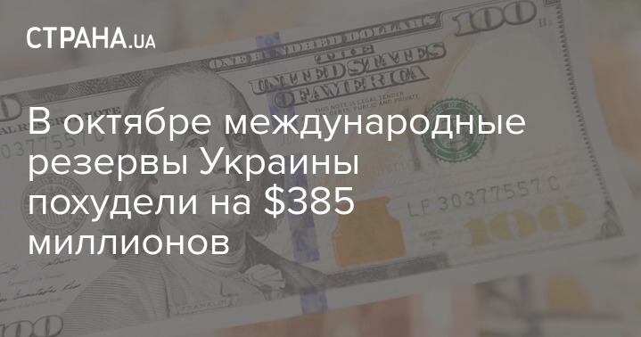 Международные резервы Украины по состоянию на 1 ноября 2020 года составляли 26,14 миллиардов долларов. В октябре они уменьшились на 1,5% (т.е. на 0,385 миллиарда долларов), сообщается на сайте НБУ.
