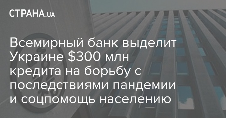 Всемирный банк выделит Украине $300 млн кредита на борьбу с последствиями пандемии и соцпомощь населению
