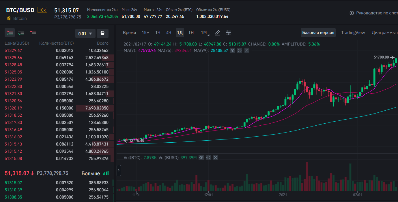 Цена криптовалюты Bitcoin продолжает расти семимильными шагами и в среду, 17 февраля, днем достигла нового исторического максимума, превысив 51 тысячу долларов.