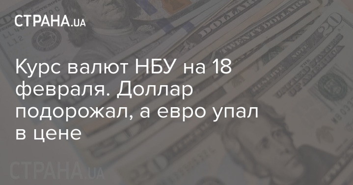 В четверг, 18 февраля, Национальный банк Украины установил официальный курс гривны по отношению к иностранным валютам. По сравнению с предыдущим рабочим днем доллар подорожал на 7 копеек, а евро упал в цене на 13 копеек.