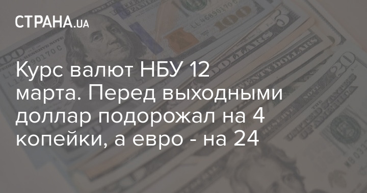 В пятницу, 12 марта, Национальный банк Украины установил официальный курс гривны по отношению к иностранным валютам. По сравнению с предыдущим рабочим днем доллар и евро подорожали.