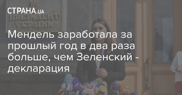 За 2020 год Мендель получила 684 048 гривен зарплаты на должности пресс-секретаря президента (без вычета налогов). В то же время Зеленский получил за этот же период 336 тысяч гривен зарплаты.