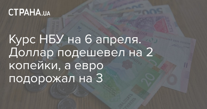 Курс НБУ на 6 апреля. Доллар подешевел на 2 копейки, а евро подорожал на 3