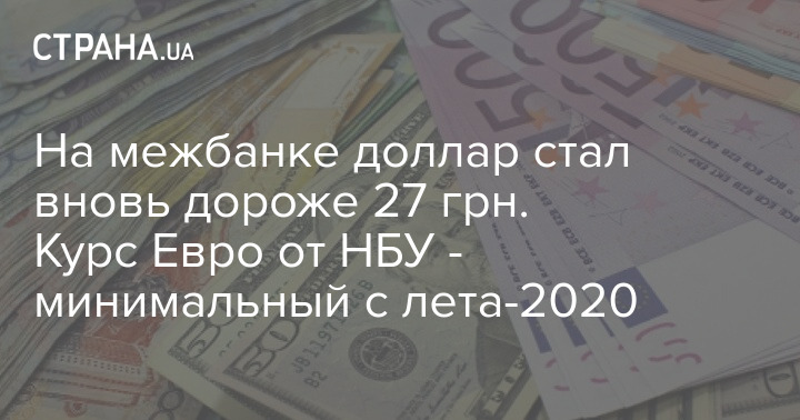 Согласно информации Нацбанка, справочный курс гривни на межбанке вырос с 27,00 гривен/$1 до 26,92 гривен/$1.