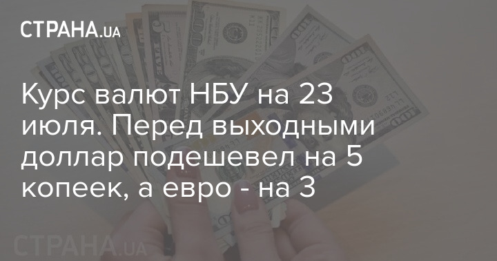 Национальный банк Украины (НБУ) в пятницу, 23 июля, установил официальный курс гривны по отношению к иностранным валютам. По сравнению с предыдущим рабочим днем доллар и евро опустились в цене.
