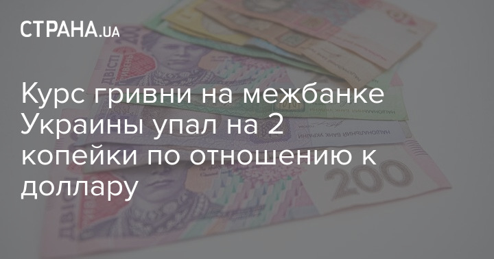 Курс гривни на межбанке Украины упал на 2 копейки по отношению к доллару