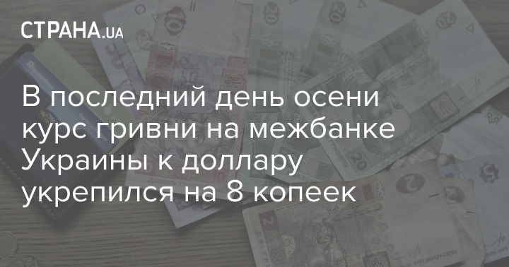 Курс гривни на межбанковском валютном рынке после снижения в понедельник на 11 копеек во вторник укрепился на 8 копеек и составил 27,16 гривен за 1 доллар.
