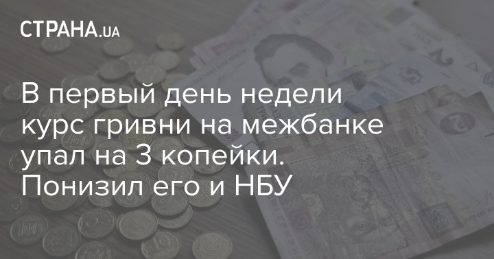 В первый день недели курс гривни на межбанке упал на 3 копейки. Понизил его и НБУ