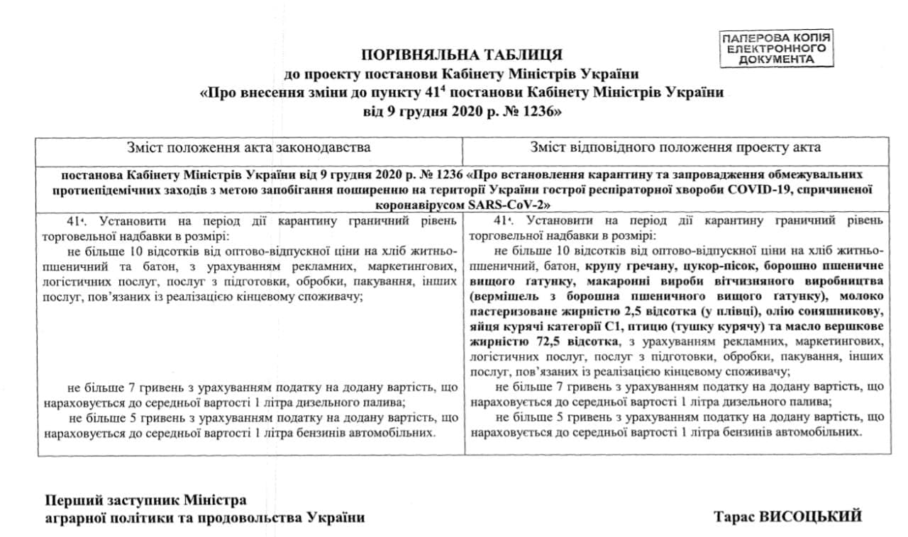 Кабмин Украины вводит государственное регулирование цен на социально важные продукты. Предельный уровень надбавки на эти товары не должен превышать 10% во время действия карантина. Такое решение принято на заседании правительства в среду, 12 января.