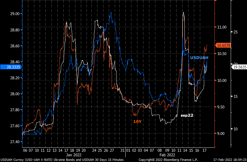 Вместе с валютным рынком негативно на военно-политические новости реагировали и украинские еврооблигации. Ставки по нашим бондам с погашением в сентябре 2022 года подскочили с 14,59% до 19,6%, что говорит о продажах наших бумаг.