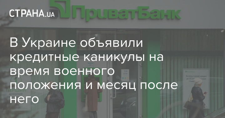 В Украине объявили кредитные каникулы на время военного положения и месяц после него