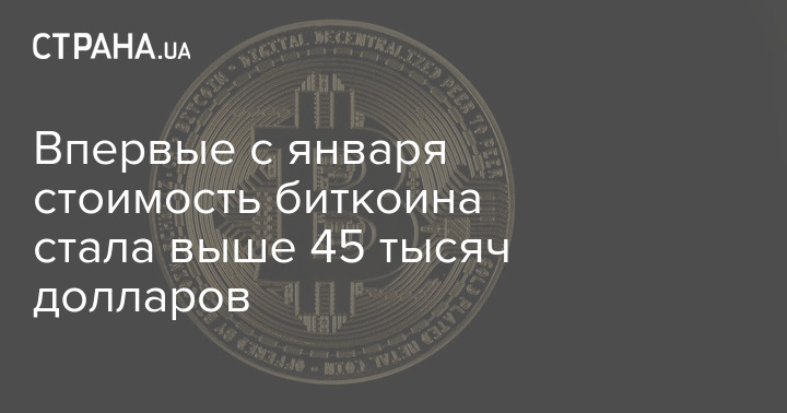 Впервые с января стоимость биткоина стала выше 45 тысяч долларов