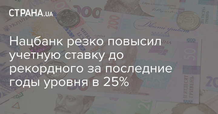 Нацбанк резко повысил учетную ставку до рекордного за последние годы уровня в 25%