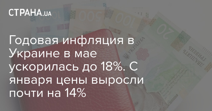 Годовая инфляция в Украине по итогам мая выросла до 18% по сравнению с аналогичным периодом прошлого года.