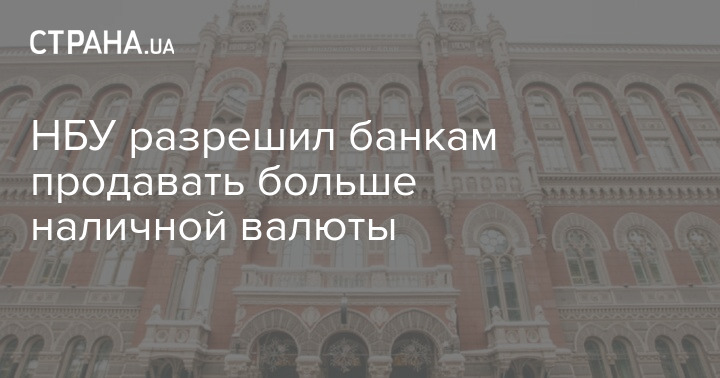 Национальный банк Украины (НБУ) разрешил банкам продавать больше наличной валюты. Теперь банки смогут продавать в наличке половину от купленной у граждан с 13 апреля безналичной валюты (дополнительно к продаже приобретенной с этой же даты наличной валюты).