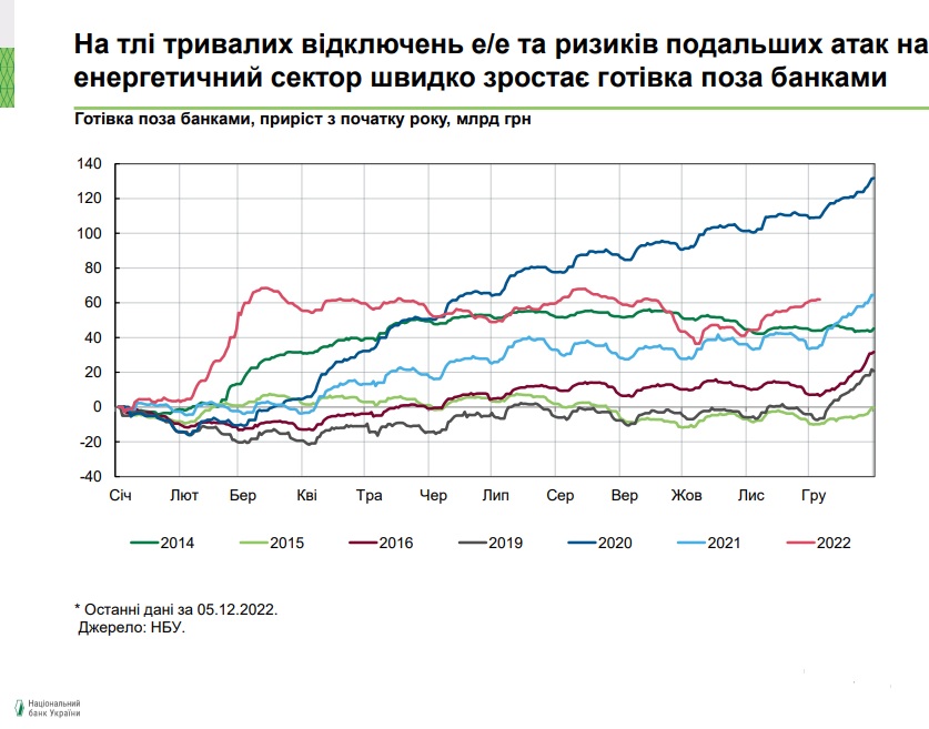 В нем также подтверждаются активные снятия украинцами наличных в банкоматах, о которых неоднократно писала "Страна". Люди вынуждены снимать кэш, чтобы рассчитываться в магазинах за товары, когда там отключают свет и не работают платежные терминалы.