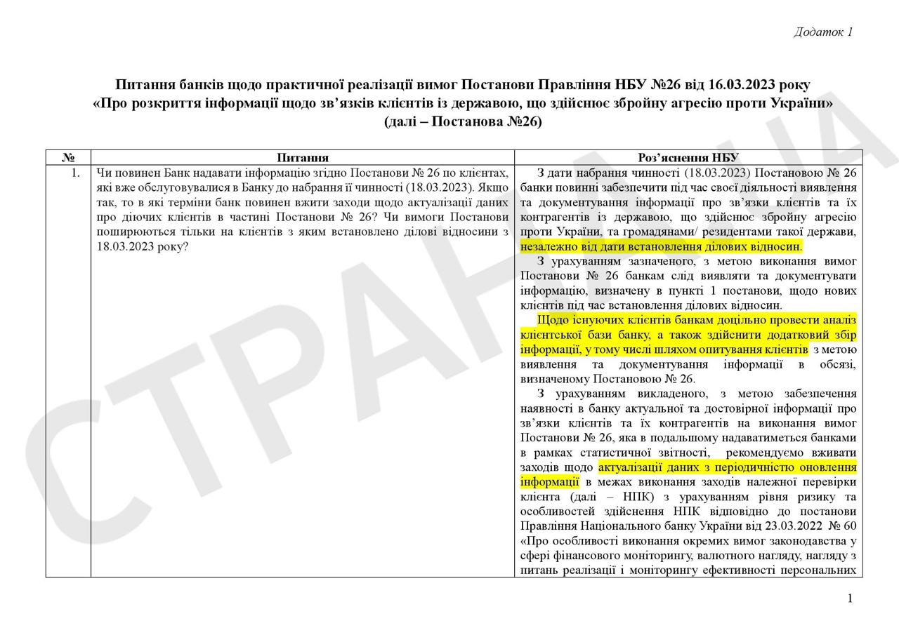 После появления в марте постановления НБУ №26 банкиры начали запрашивать эти сведения у своих клиентов - об их связях с РФ и связях их партнеров. Однако часто не получили от них нужной информации.