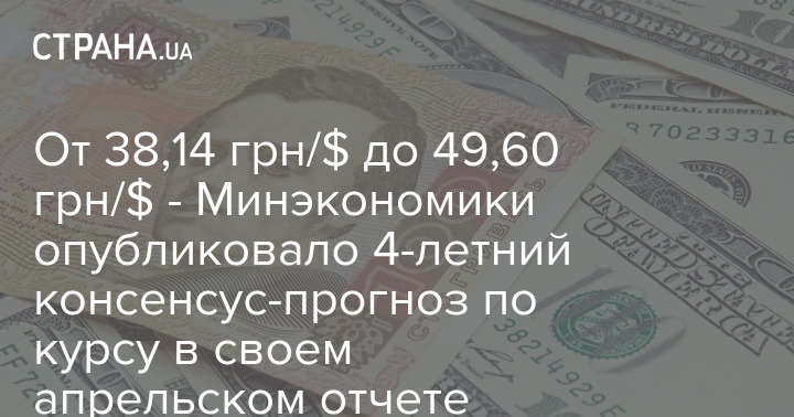 Министерство экономики Украины опубликовала свой макроэкономический консенсус-прогноз за апрель. В нем оно оценило изменение обменного курса гривна/доллар на четыре года в двух категориях — средний по году и на конец года, а также в максимальном и минимальном уровнях.