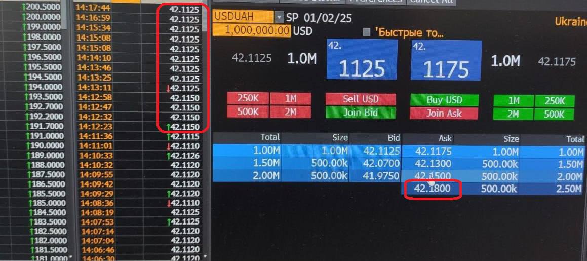 "Мы не видим пассивности бизнеса, привычной для первой новогодней недели в январе. Уже сегодня многие импортеры повыходили с покупками доллара, а стабильных валютных продаж со стороны экспортеров не наблюдается. Нацбанк обеспечивает валютное предложение и повышает курс. К 42,10 грн/$ НБУ, видимо, больше не привязывается, а держит в голове среднегодовой курс на 2025 год на уровне 45 грн/$. Если экспорт продолжит придерживать валютную выручку, то доллар будет и дальше дорожать, хотя и постепенно", — сказал "Стране" директор казначейства одного из банков.