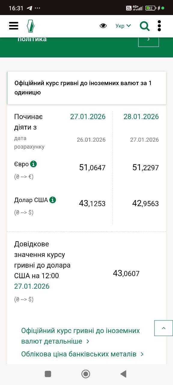 На этом фоне Нацбанк предпринял уже традиционный трюк - опустил курс гривна/доллар: на межбанке он сегодня проседал до 42,76 грн/$, а официальный курс НБУ отошел с 43,1253 грн/$ до 42,9563 грн/$.