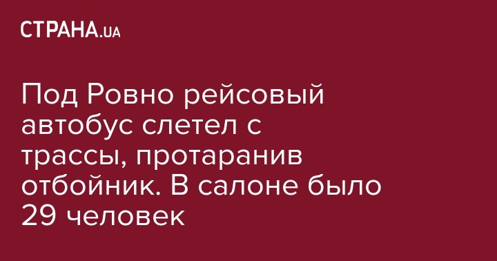 В пятницу, 20 октября, в городе Сарны Ровенской области рейсовый автобус из 29 пассажирами протаранил отбойник и слетел с дороги. Об этом сообщает пресс-служба управления ГосЧС в Ровенской области.