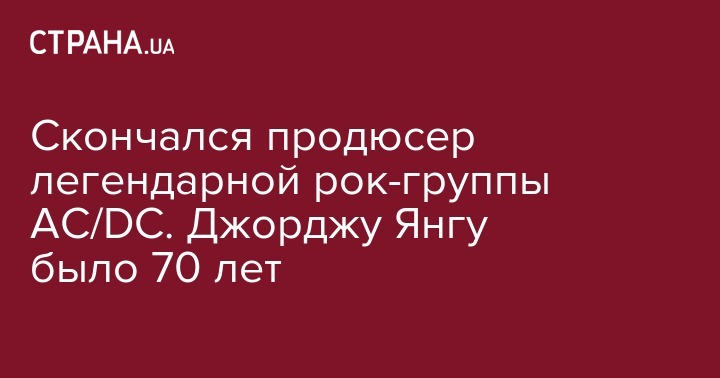В Австралии скончался продюсер легендарной рок-группы AC/DC, гитарист группы Easybeats и один из самых известных австралийских музыкантов Джордж Янг. Об этом сообщается на сайте AC/DC.
