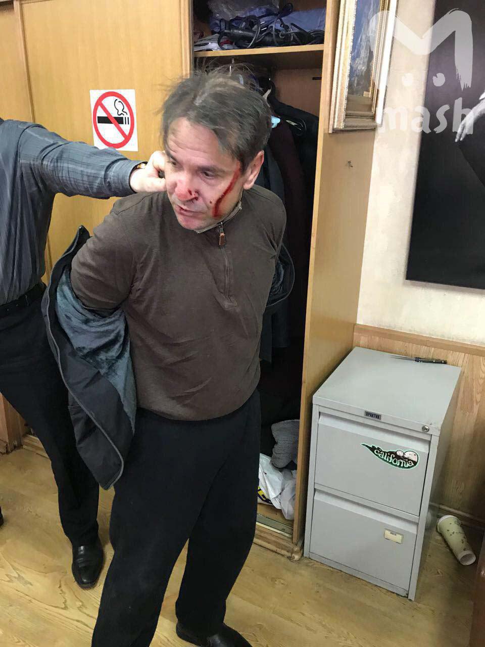 Охрана "Эха" слегка помяла мужика во время задержания. У него глубокий порез на щеке Фото: Telegram-канал Mash