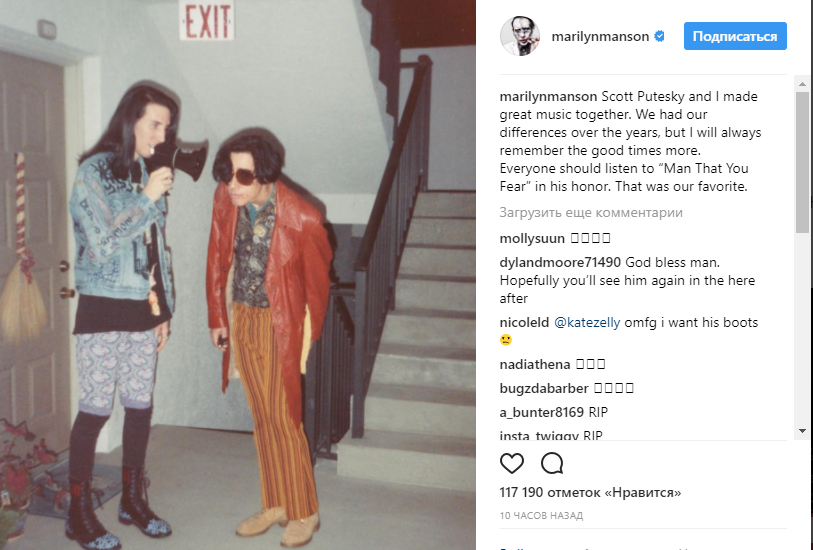 Смерть Путески в своем Instagram прокомментировал Мэрилин Мэнсон.