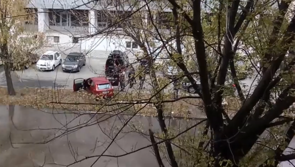 В центре Киева гейзер с горячей водой залил стоянку машин