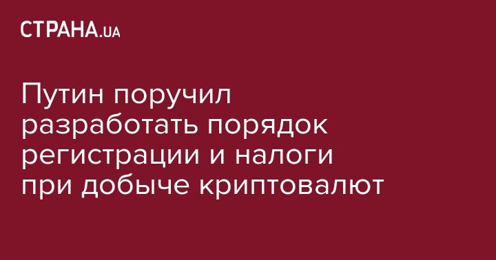 Правительству и Банку России президент РФ Владимир Путин поручил разработать порядок налогообложения и регистрации компаний, занимающихся майнингом криптовалют. Об этом сообщается на сайте Кремля.