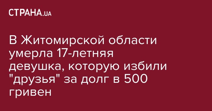 Девушка, которую избили двое девушек и двое парней в Малине Житомирской области, требуя вернуть 500 гривен, умерла в больнице.