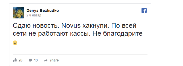 Вечером вторника, 24 октября, вероятно, в Киеве внезапно были закрыты супермаркеты сети Novus. Вероятно, это произошло в результате хакерской атаки или нового компьютерного вируса.