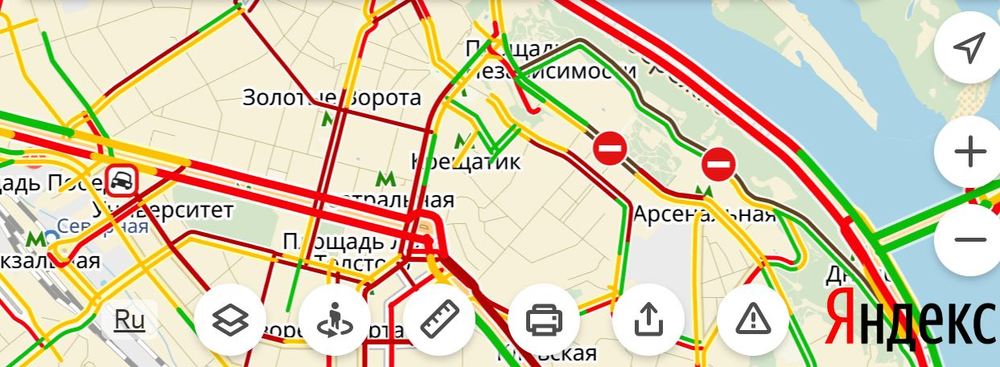 Серьезные заторы в центральной части Киева: движение затруднено в районе станций метро "Театральная", "Печерская", "Кловская", "Дворец Украина", "Площадь Льва Толстого", "Золотые ворота", "Майдан Незалежности", "Почтовая площадь", "Лукьяновская".