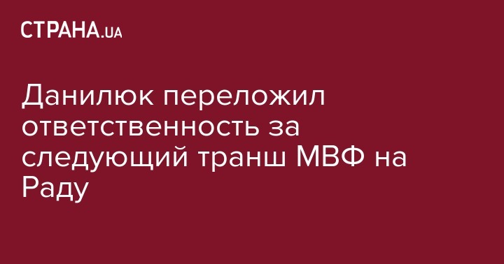 Данилюк переложил ответственность за следующий транш МВФ на Раду